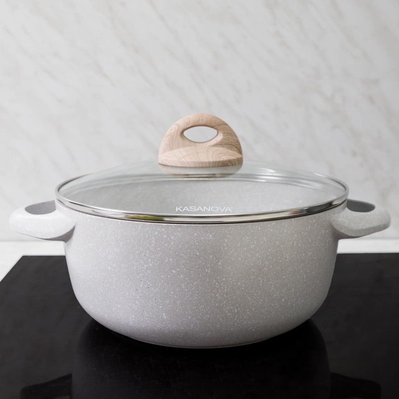 KASANOVA 10Pcs Pots and Pans set, Die-cast aluminum cookware, Kitchen Induction Pots and Pans cooking set, PFOA-free, GenX-free, Oven-safe casserole, Frying pans, Cream (10-Piece)