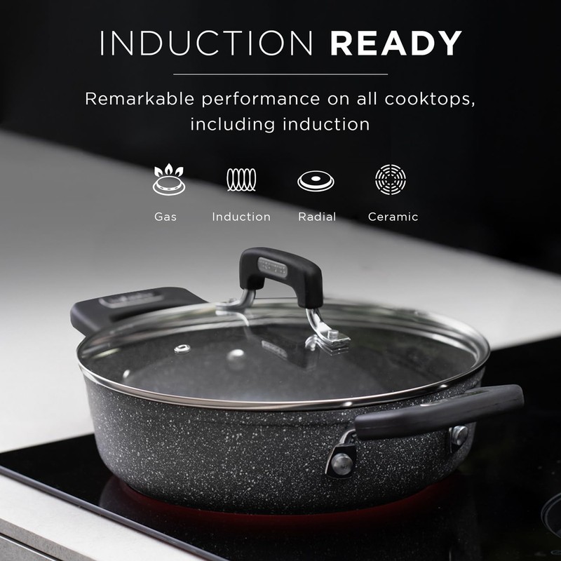 - [INDUCTION READY]: full induction base of kitchen set provides remarkable performance on all cooktops, including induction.