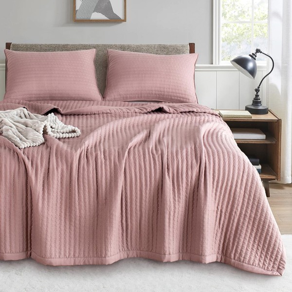 KASENTEX Purple Mauve King Size Quilt Bedding Sets with Pillow-Shams, Lightweight Soft Bedspread, Quilted Blanket Thin Comforter Bed Cover, All Season Summer Spring, 3 Pieces, 104x90 inches