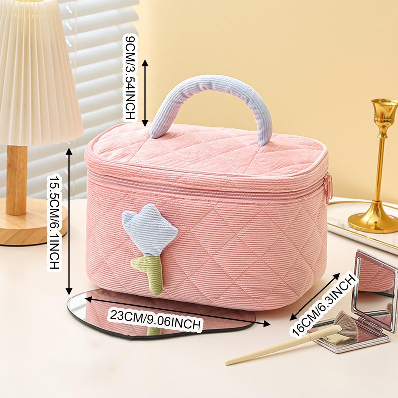 - 【Kawaii Design】Cotton cosmetic bag with floral cute pattern design, fresh and fashionable.This makeup bag is a favorite among young girls.