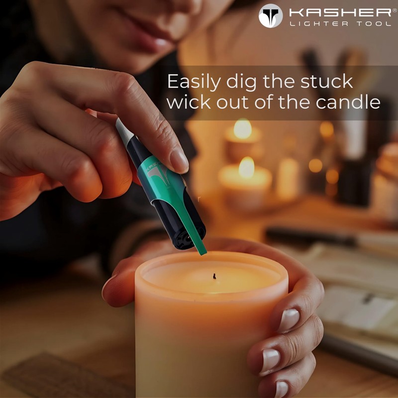 - Multipurpose Utility: Kasher’s design features a thick and durable metal tip that resists bending or breaking and it acts as a strong, blunt tool suitable for various tasks, including opening letters and packages, cutting shipping tape, Fix Candle wick. It's also useful for removing residue from small bores or tight spaces. Despite its array of functions, the tool remains compact and lightweight, easily attaching to your lighter
