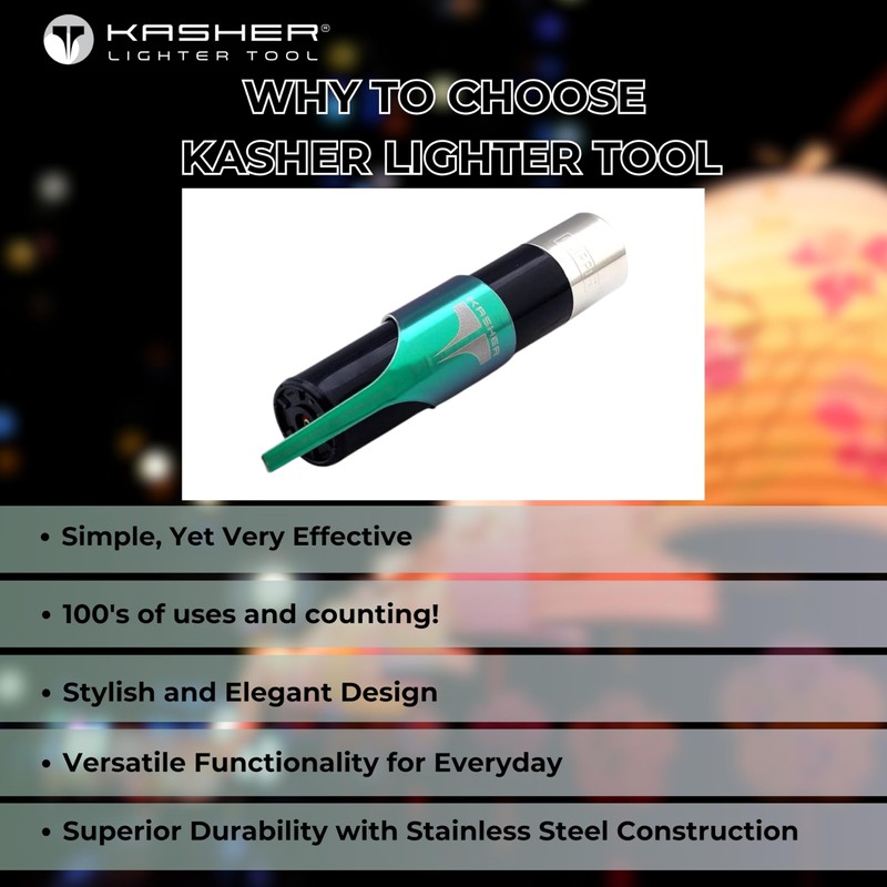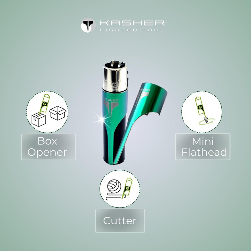 Kasher 360 Round Lighter Tool Without Lighter - Stainless Steel - Lightweight, Durable Construction, Portable - Multipurpose Tool - Usage as Cutter for Opening Box, Fix Candle Wick & More (Green)