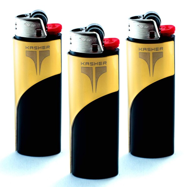 Kasher Classic Multi-Tool Lighter Case with Lighter - Lightweight, Durable Construction, Portable - Stainless Steel - Versatile Usage as Cutter for Opening Packages & More - Pack of 3 (Gold)