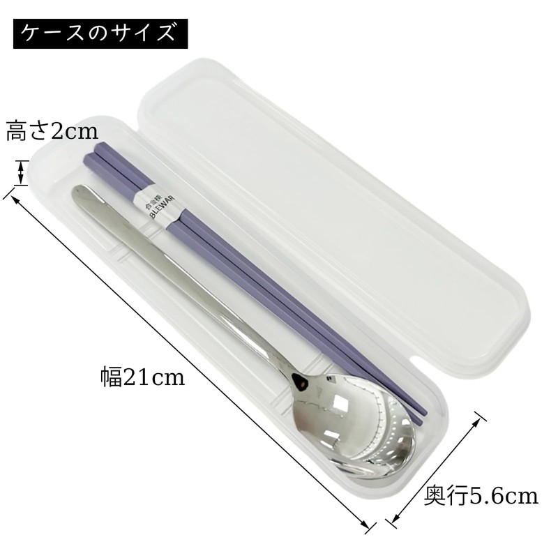 - Material: Chopsticks: Methacrylic resin, Spoon: Stainless steel, Case: PP resin; Size: Chopsticks Length: 7.4 inches (18.8 cm); Spoon Length: 7.3 inches (18.5 cm); Case: Width: 8.3 inches (21 cm); Depth: 2.2 inches (5.6 cm); Height: 0.8 inches (2 cm); Package Weight: Approx. 3.1 oz (94 g)