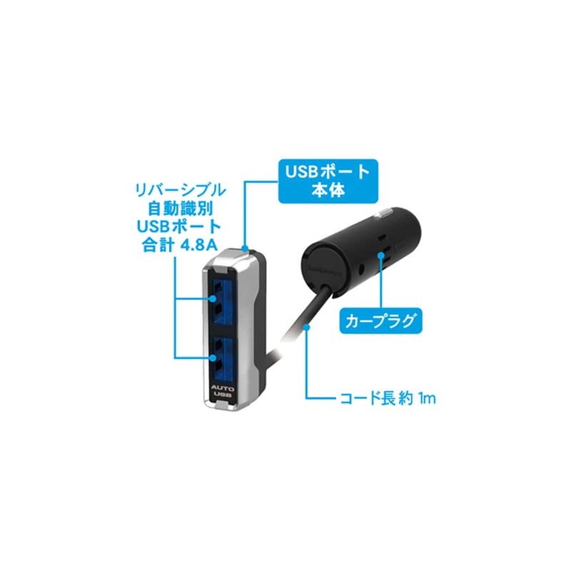 Kashimura DC-4.8A - Reversible USB 2-Port Automatic Determination DC025