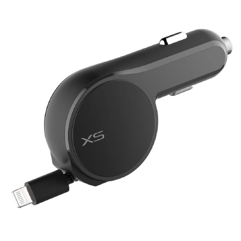 Kashimura NKL-111 DC Charger Reel, 3A, Lightning, Ultra Compact, Switchless Blue LED Energizing Lamp, Black