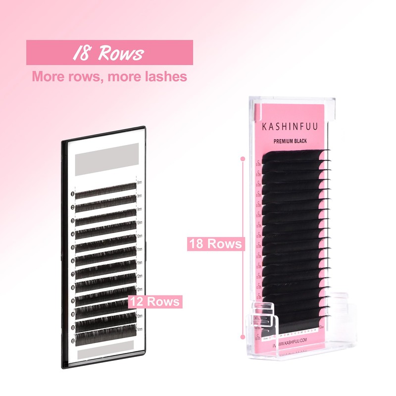 - 18 Rows High Volume:Choose 0.05mm/0.07mm thickness, 5-9mm/10-15mm/16-20mm mixed lengths, or single 12-17mm. Stack C/CC/D/DD/J curls for dramatic volume. Perfect for lash artists creating easy-to-fan lash extensions