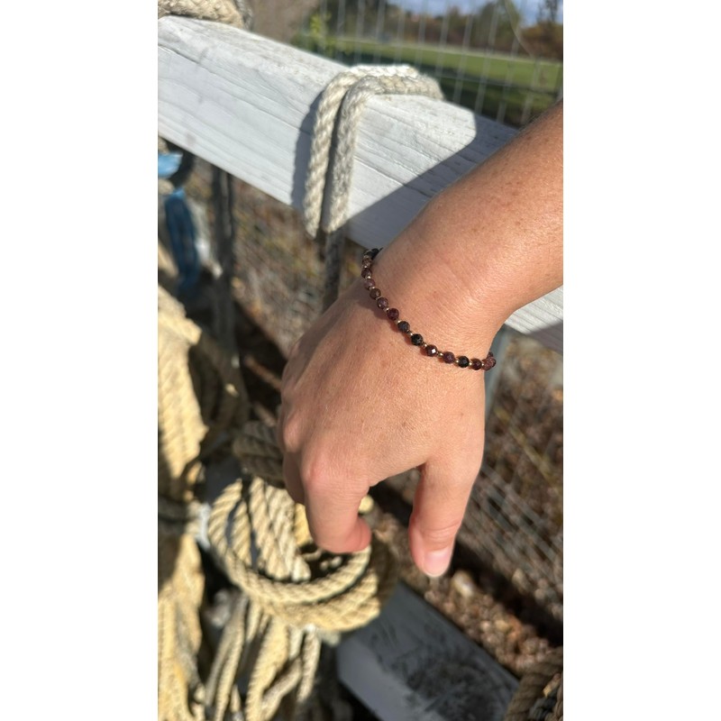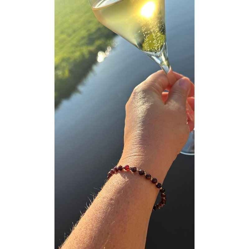 Discover the exquisite Kasias pearl bracelet women's red, a timeless piece of jewellery that embodies elegance and natural beauty. This bracelet made of 3 mm faceted red garnet not only brings colour to your outfit, but also positive energy and confidence. The high-quality hematite intermediate parts give the bracelet an extra shine and set stylish accents. With a flexible, elastic band, the bracelet adapts perfectly to your wrist and ensures a comfortable fit. This bracelet is not only a fashion accessory, but also a meaningful gift for special occasions. Whether as a birthday gift, anniversary or simply to do something good for yourself, the Kasias garnet bracelet is the ideal choice for any woman who values quality and style. Red Garnet is a symbol of romantic love and passion. It has been considered a gemstone of hope for centuries and is said to protect against negative influences. All our products come in a beautiful, sustainable gift box. The soft black velvet highlights the luxurious look. This makes our jewellery a gift that suits any occasion. The gift box comes with a description card. This card contains useful information about the gemstone, its meaning and its spiritual and physical properties. Please note that the colour of our products may vary due to the nature of the gemstones.