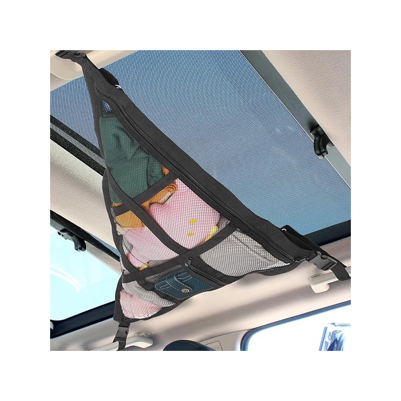 Kaskawise 31.5"x21.6" Car Ceiling Cargo Net-Fits Cars with Three Handles,Non-Blocking Rearview Mirror,Double-Layer Interior Roof Cargo Net for Travel Road Trips and Car Camping