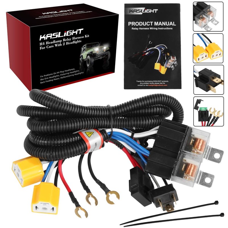 - This 1set 2-headlights h4 headlight relay harness Fixes cars with 2 pcs H4 plug headlamps, such as 7x6 led headlights. Problems like Dim Headlights, Flickering Headlights, Back Feeding Power, Malfunctioning Headlights when using Hi/Low Beams can be fixed with this kaslight 2-headlight h4 headlamp relay. Make a big improvement for visibility on your cars at night.