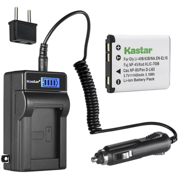 Kastar 1-Pack Li-42B Battery and LCD AC Charger Compatible with Olympus FE-290 FE-300 FE-320 FE-330 FE-340 FE-350 FE-360 FE-3000 FE-3010 FE-4000 FE-4010 FE-4030 FE-4050 FE-5000 FE-5010 FE-5020 Camera
