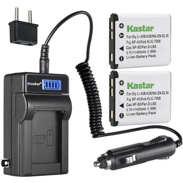 Kastar 2-Pack Battery and LCD AC Charger Compatible with Praktica Luxmedia 3-Oct, 4-Dec, 12-Z, 12-Z4, 12-Z4TS, 12-Z5, 14-04, 14-Z4, 14-Z4TS, 14-Z50, 14-Z50S, 14-Z51, 14-Z80, 14-Z80S, 16-Z51