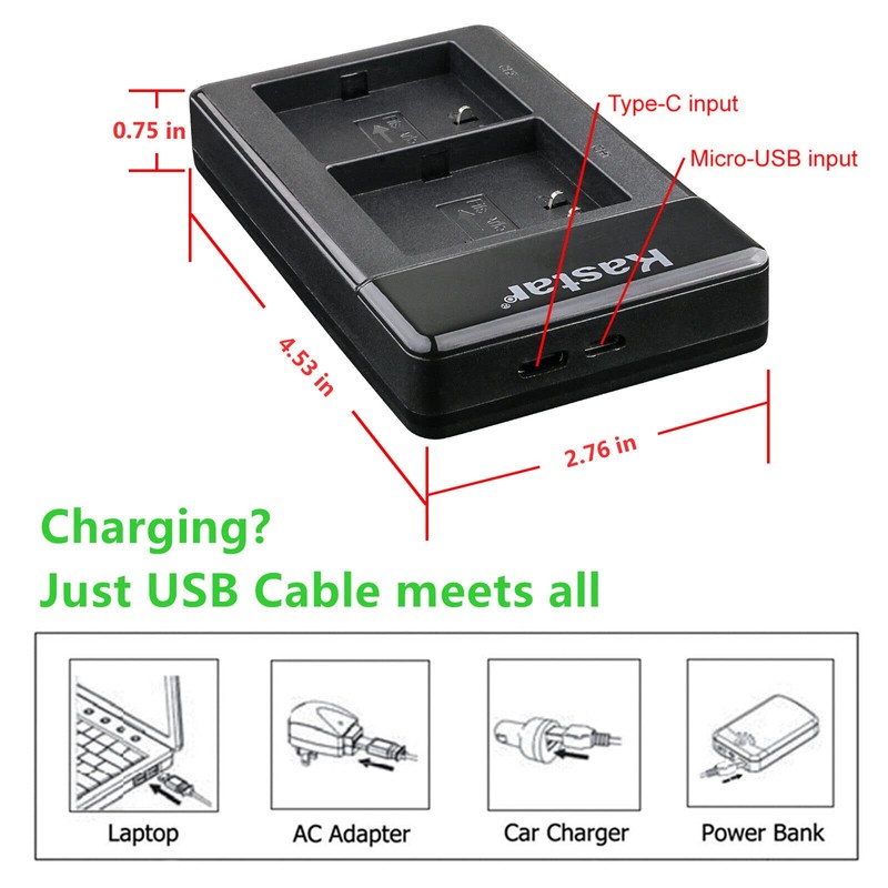 • Kastar LCD Dual Slot charger, can charge 2 batteries at the same time.