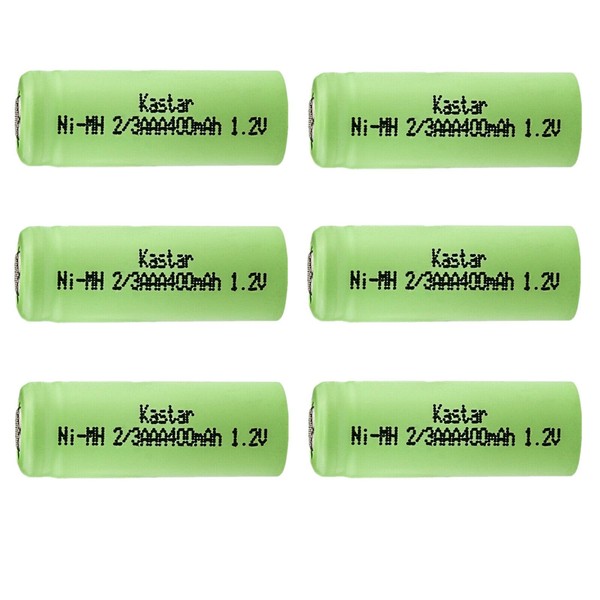 Kastar 6 Pcs Ni-MH 2/3AAA Battery 1.2V 400mAh (Flat Top) for Solar Light, Solar Flowers, Remote Control, Garden Light, Photo Devices and Electronic Projects, Game, Flashlight, Toy, MP3/MP4 Player