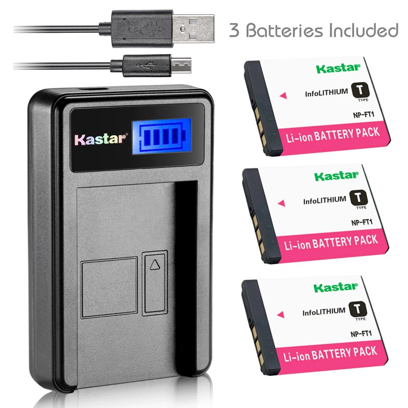 Kastar Battery LCD Charger for Sony NP-FT1 FT1 & Sony Cyber-shot DSC-T1 Camera - LCD Charger + 3 Batteries