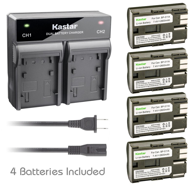 Kastar BP-511 Battery or Dual Rapid Charger for Canon EOS 5D 10D 20D 20Da 300D 30D 40D - 3 Batteries