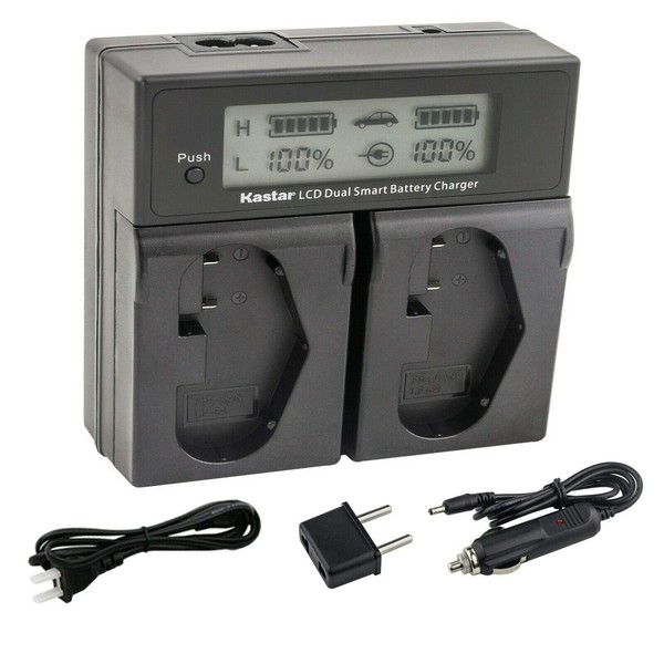 Kastar Fully Decode LP-E19 Battery LCD Dual Fast Charger for Canon LP-E19 LP-E19N, LP-E4 LP-E4N, US 5751B002, LC-E4 LC-E4N, LC-E19 LC-E19N, 7.2V Output