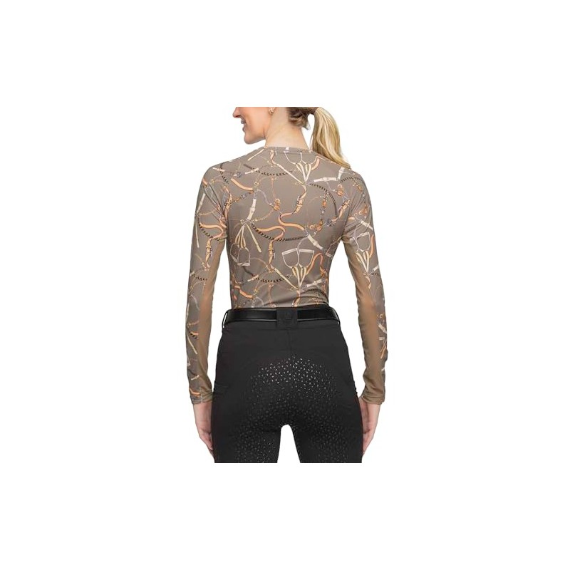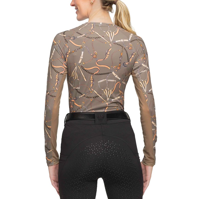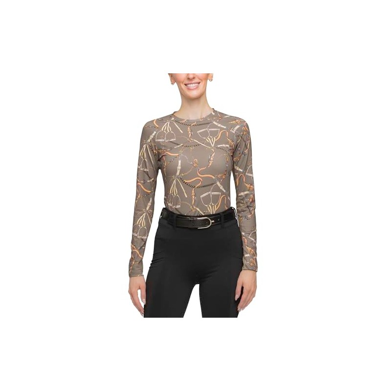 Kastel Denmark Lightweight Printed Crewneck UPF 30+ | Moisture Wicking Base Layer | Womens Activewear Golf Polo, Equestrian, Outdoor Apparel Taupe