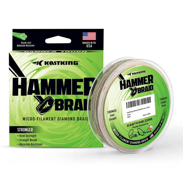 KastKing Hammer Braid Fishing Line, Green Camo, 4 Strand, 50LB, 150Yds