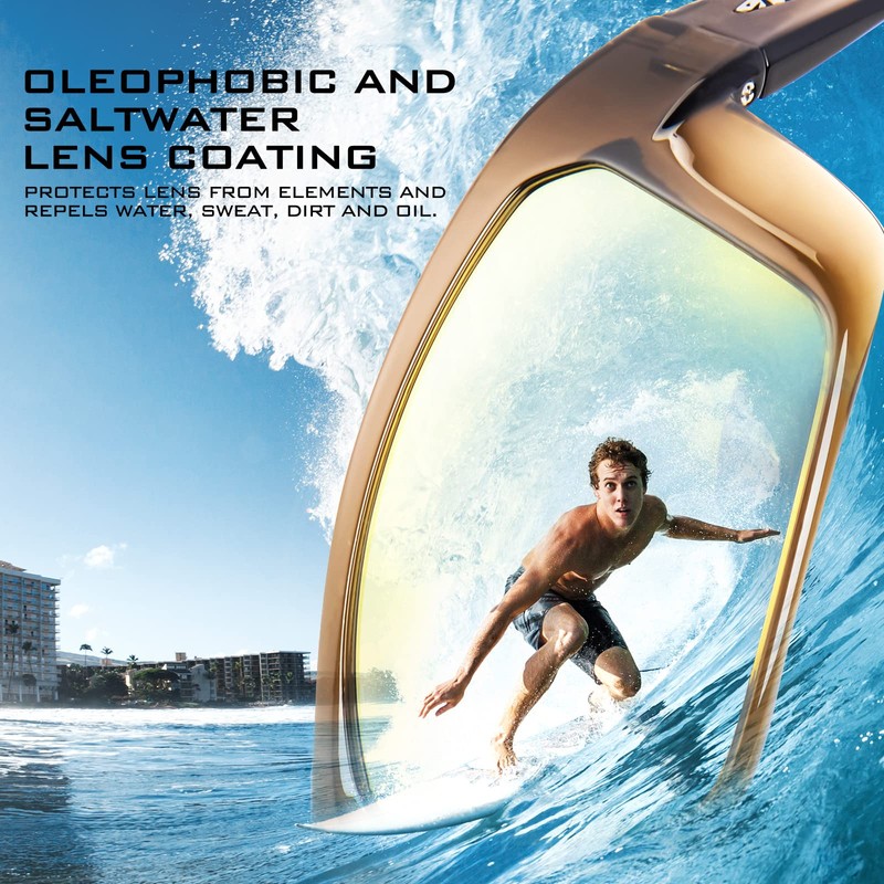 - *KEY FEATURES – Oleophobic lens coating repels saltwater, oil, and chemicals - Polarized lenses reduce glare - Impact resistant TAC lenses protect your eyes from flying objects - Block 100% of the harmful UVA and UVB rays - Lightweight, durable, and comfortable Grilamid frames – 30 Day Money Back Guarantee