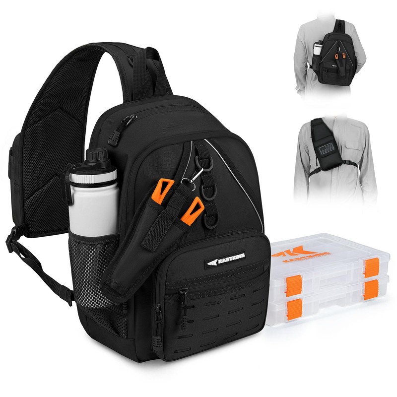 KastKing Karryall Fishing Sling Tackle Bag with 2 Tackle Trays, Tactical Fishing Tackle Storage Bag, Fishing Gear Storage