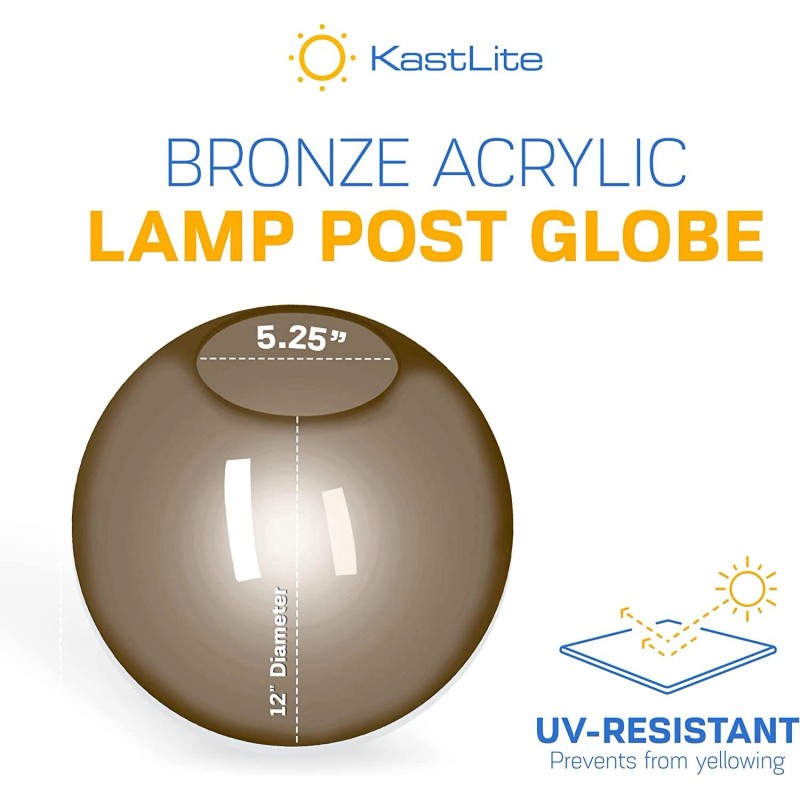 KastLite 12" Bronze Acrylic Lamp Post Globe | 5.25" Neckless Opening