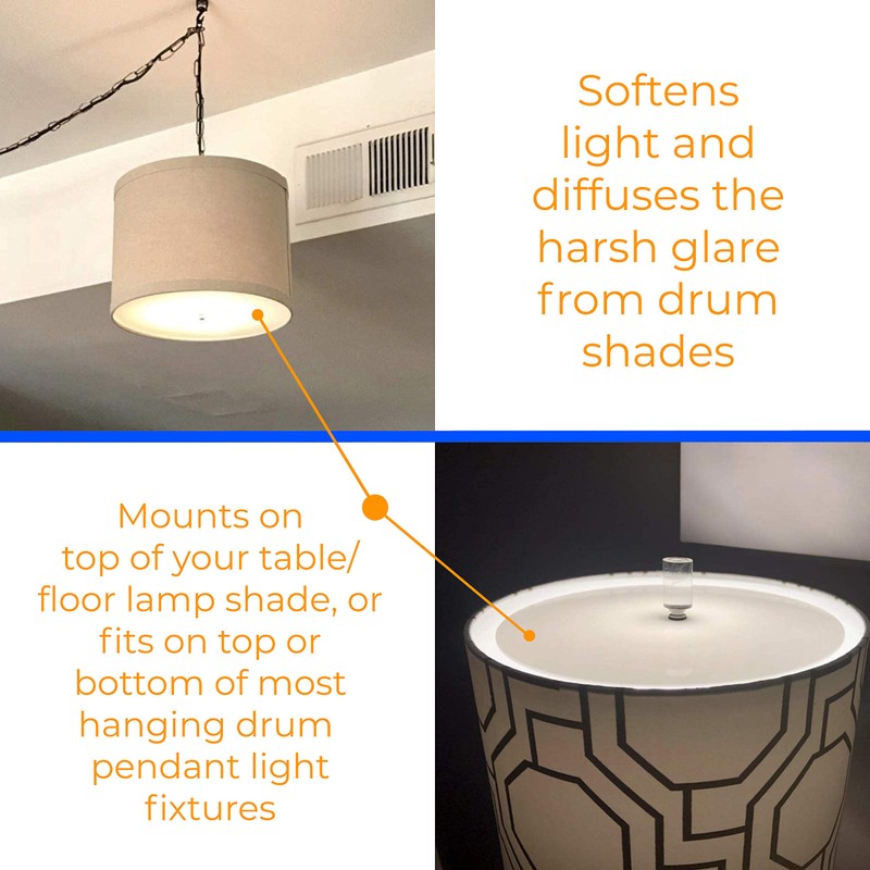 - BETTER QUALITY & SOFTER LIGHT - Softly frosted matte on both sides will eliminate light bulb glare from ugly CFL or LED bulbs. Directs light downward for accent or for improved reading light. Softens the light and diffuses the harsh glare from stylish drum shades.