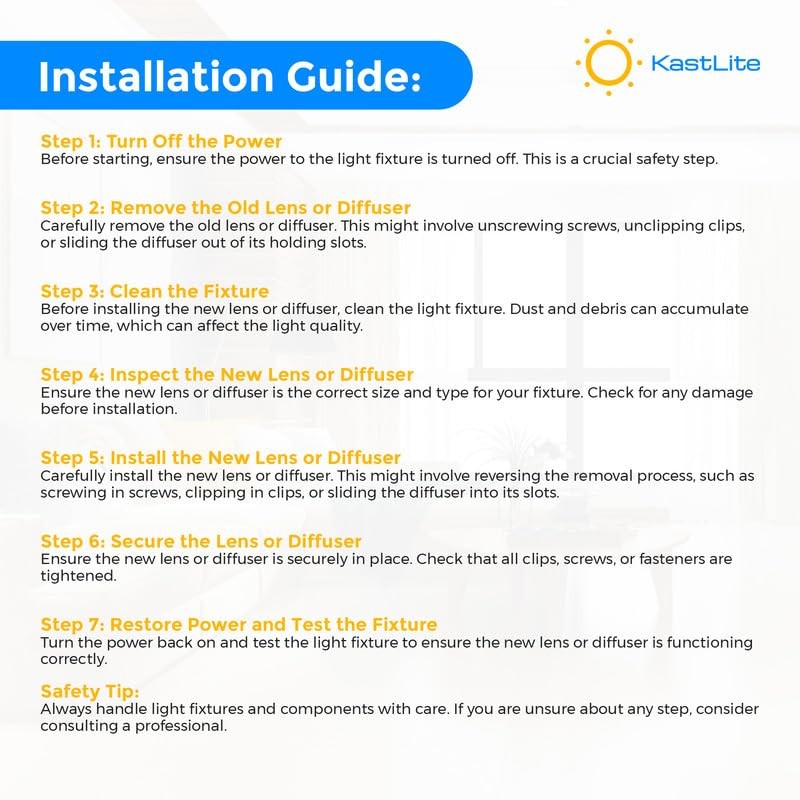 Upgrade your lighting with KastLite’s precision-molded replacement lens — the ideal ceiling light cover replacement for both fluorescent and LED fixtures. Made from durable plastic acrylic, these fluorescent light diffuser covers are thermal-formed for long-lasting shape and clarity, even in outdoor, humid, or high-heat environments. Whether you're replacing ceiling light covers for fluorescent lights in a classroom, office, house, or warehouse, this vapor tight lens filters glare, enhances brightness, and keeps your drop ceiling light cover setup fog-free and compliant. The matte or clear shade options help diffuse light evenly while adding protection and longevity to your fixtures.