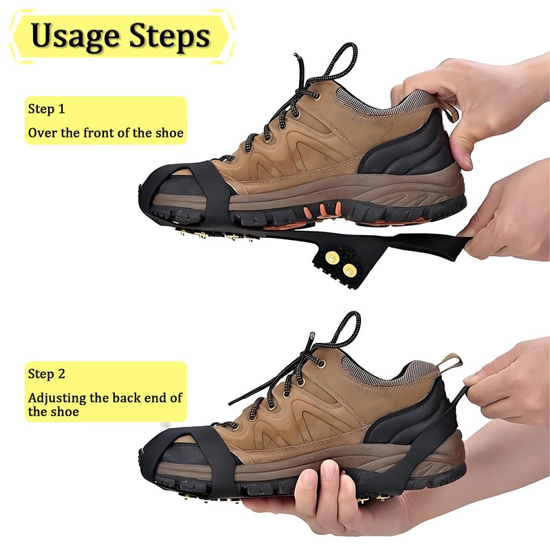 - Widely applicable scenarios: Ice snow grips are suitable for outdoor activities such as hiking, ice fishing, hunting, walking, jogging, running, snow shoveling, etc. in icy and snowy weather. Anti slip grips crampons are also suitable for daily travel in winter to help avoid slipping on slippery roads.