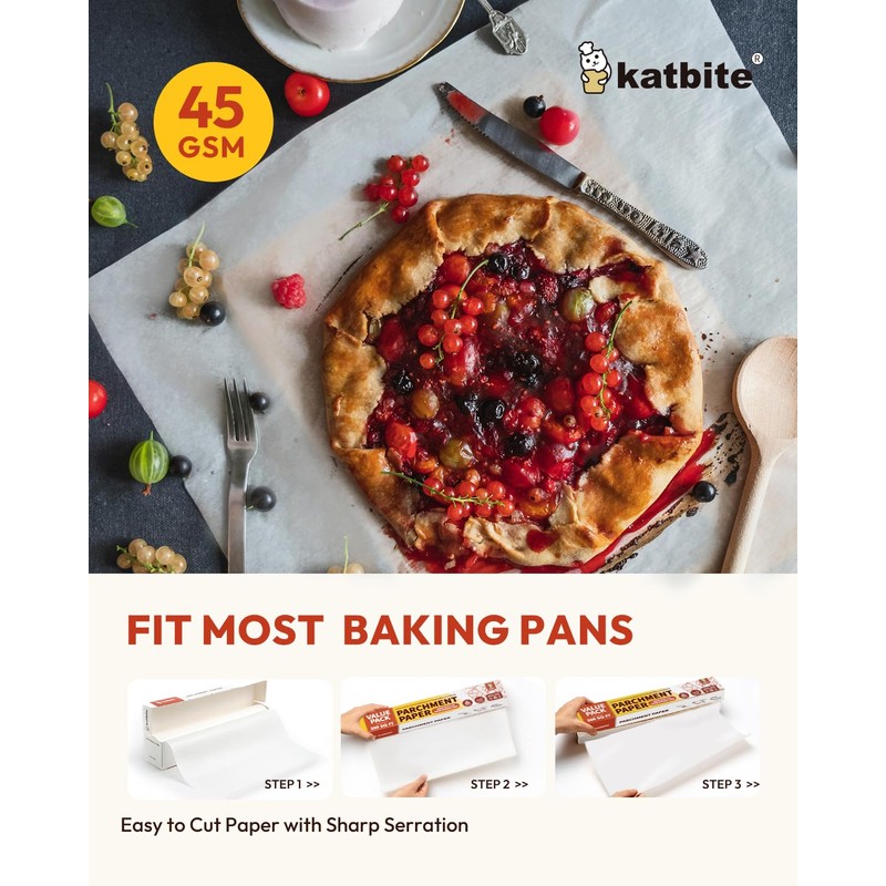 - NON-STICK & EASY TO CLEAN- Do you love baking but hate cleaning up? This nonstick parchment paper sheet makes it possible and even works great! Food can be easily slide off from the baking tray and you just need to remove the baking paper and throw it away after baking. Even wet dough won't stick to it. Let Katbite be your good kitchen helper!