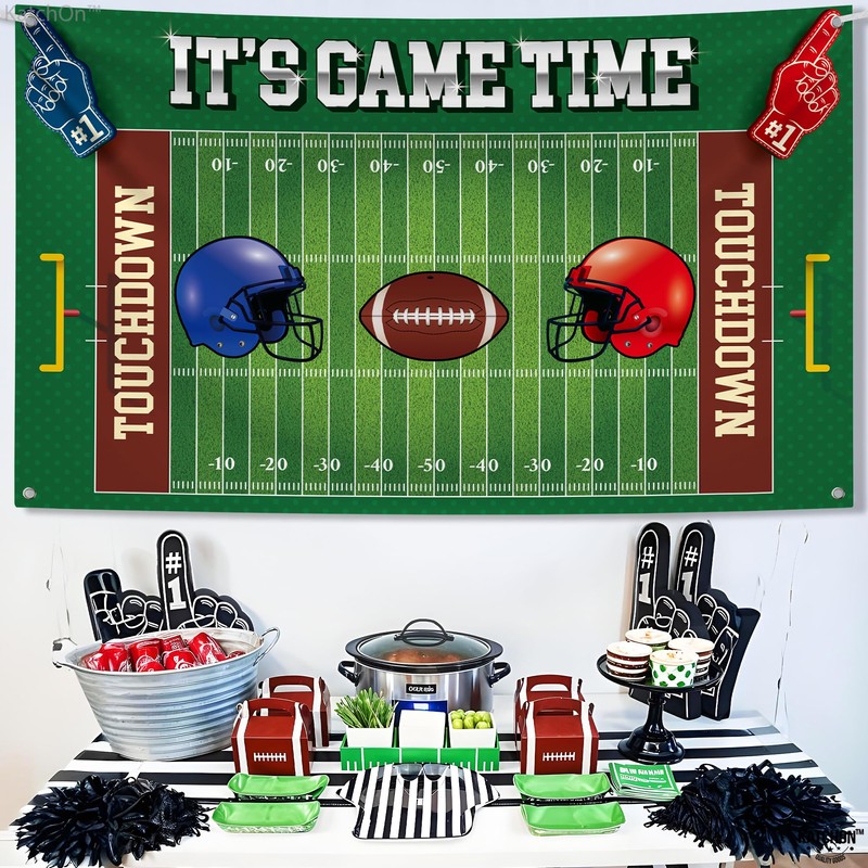 - SCORE BIG WITH OUR VERSATILE ITS GAME TIME BANNER : Our football party backdrop is perfect for many occasions! Ideal for football party decor, game day party decorations, first down football birthday party decorations, football birthday decorations, tailgate party decorations, football room decor and more. Its vibrant colors and dynamic design add excitement and energy to your football party decorations birthday. Let this banner be the winning addition to your football super sunday decorations!