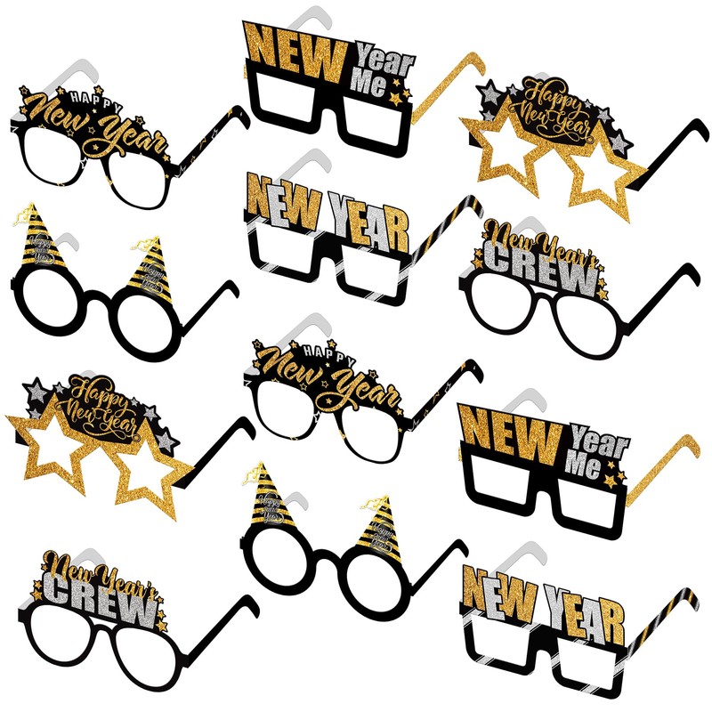 - STURDY AND REUSABLE | NEW YEARS PARTY SUPPLIES: These printed black and Gold new years eve party glasses are printed on a thick Cardstock that is sturdy enough and comfortable to wear, the appropriate size fits most. You can even re-use it on different special occasions. Easy to keep and store. Creates wonderful happy new year eyeglasses as 2025 new years eve party supplies. Step into Happy new years decorations 2025 in style with our exclusive NYE glasses.