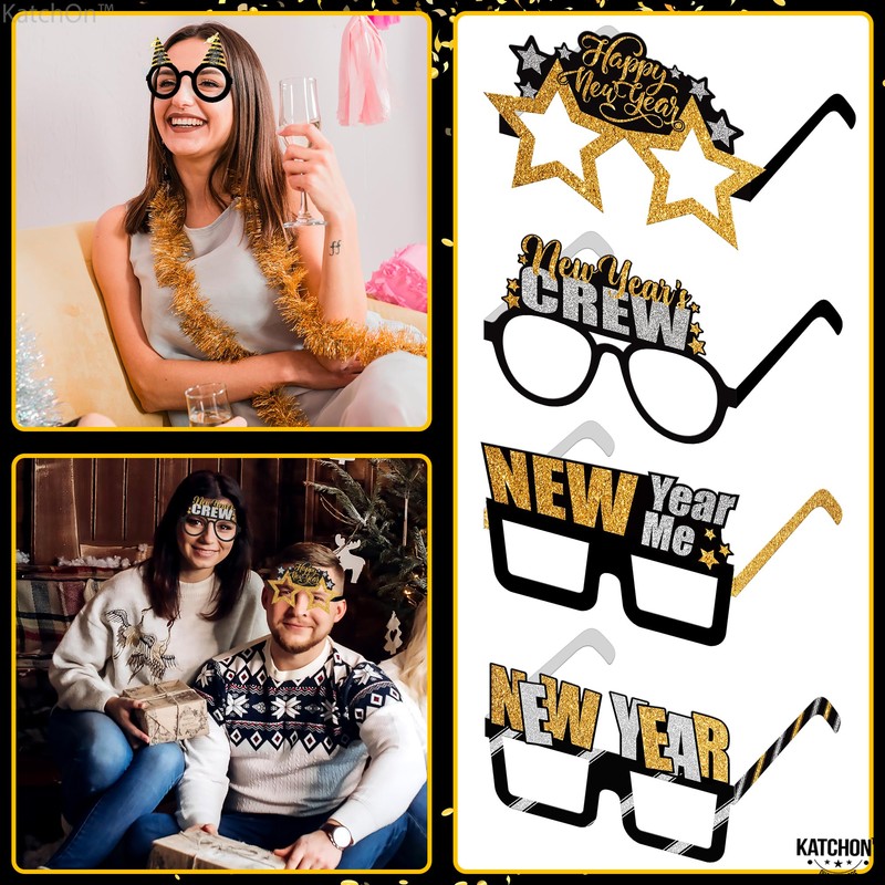 - MULTI-PURPOSE | PICTURE PERFECT: A perfect match of Gold, black, and printed gold is an elegant trend. Using these black and gold 2025 New years eve glasses 2025 on your Dance Craze Ballroom-themed party, and Moon and Stars theme New Year event will absolutely make it a big hit! Great costume prop for New Year party, cosplay, birthday party, masquerade new years eve party glasses 2025, 2025 NYE decorations. Ring in the New Year in style with new years sunglasses.