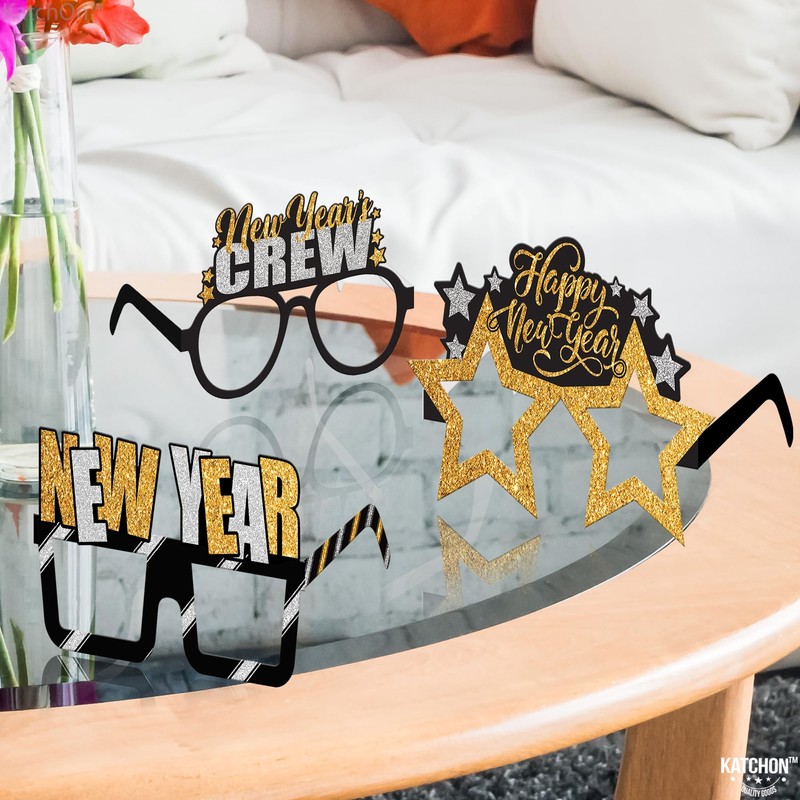 - STURDY AND REUSABLE | NEW YEARS PARTY SUPPLIES: These printed black and Gold new years eve party glasses are printed on a thick Cardstock that is sturdy enough and comfortable to wear, the appropriate size fits most. You can even re-use it on different special occasions. Easy to keep and store. Creates wonderful happy new year eyeglasses as 2025 new years eve party supplies. Step into Happy new years decorations 2025 in style with our exclusive NYE glasses.