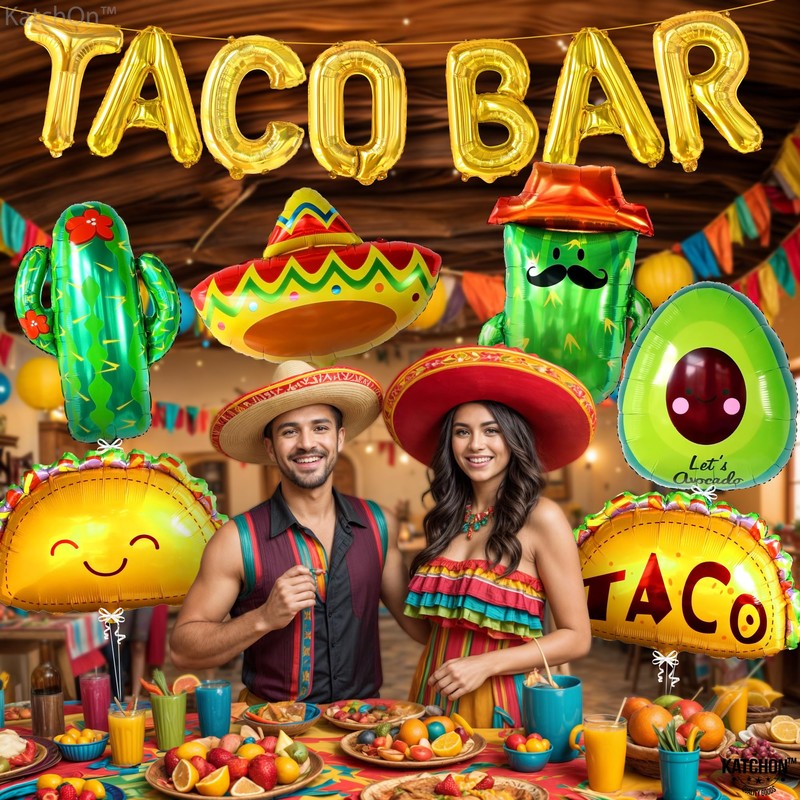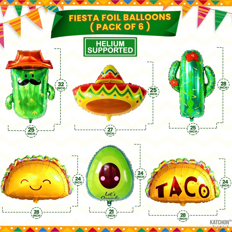 KatchOn, Huge 13 Pcs Taco Bar Decorations - Fiesta Party Decorations | Taco Balloons, Fiesta Balloons, Taco Party Decorations | Cactus Balloons, Cinco De Mayo Decorations | Mexican Party Decorations