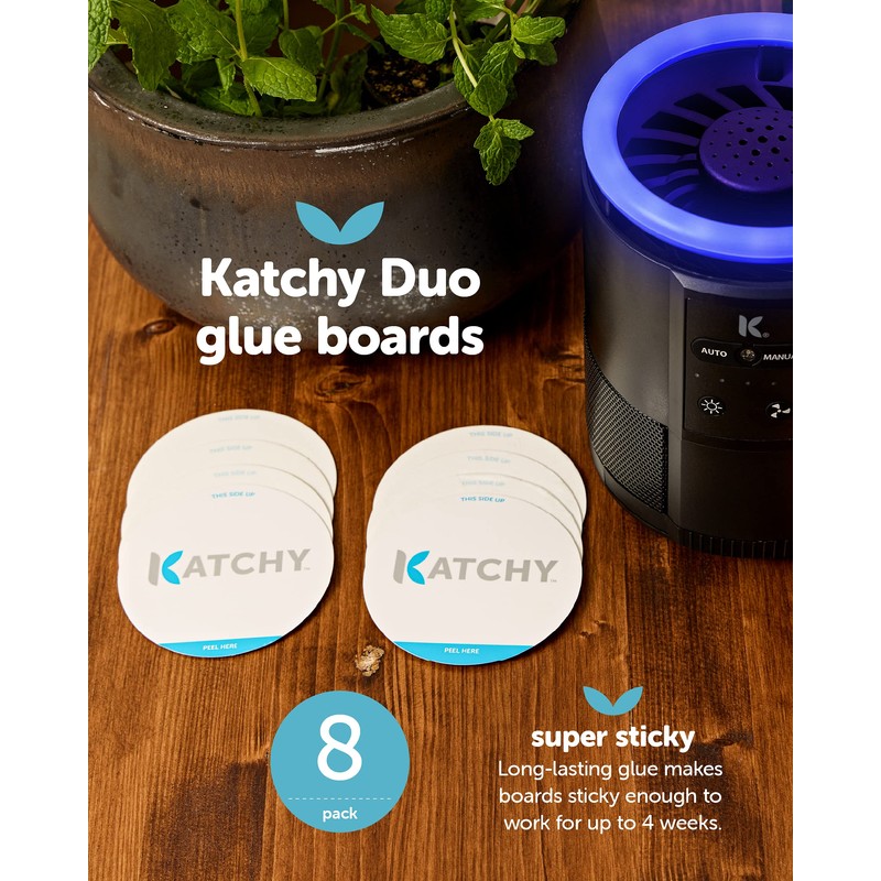 - PACK OF 8 GLUE BOARDS FOR KATCHY DUO TRAP - specifically customized for the KATCHY Duo bug killer. Does not work with the Katchy Original or Automatic.
