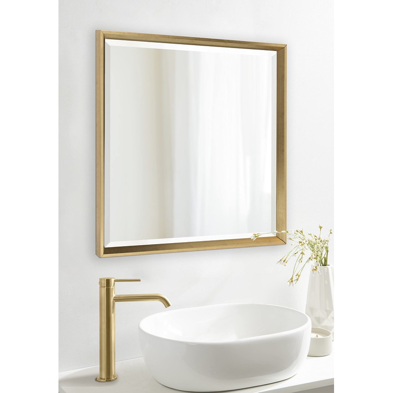 A large, square mirror is the type of home accessory that performs without any fuss. The shape along with the antique gold trim and the handsomely detailed beveling on the mirror itself makes the Kate and Laurel Calter Mirror, not just an accessory but a showpiece. Use it in a bathroom for a functional decorative effect over a vanity or as an impressive piece of wall art. It works in many spaces. Hang it in an entrance hall, over a bench or couch, in the dining room, etc. A well-placed mirror creates harmony and pulls a room together as it reflects the space. The dimensions are 28 inches square by 1. 5 inches deep.