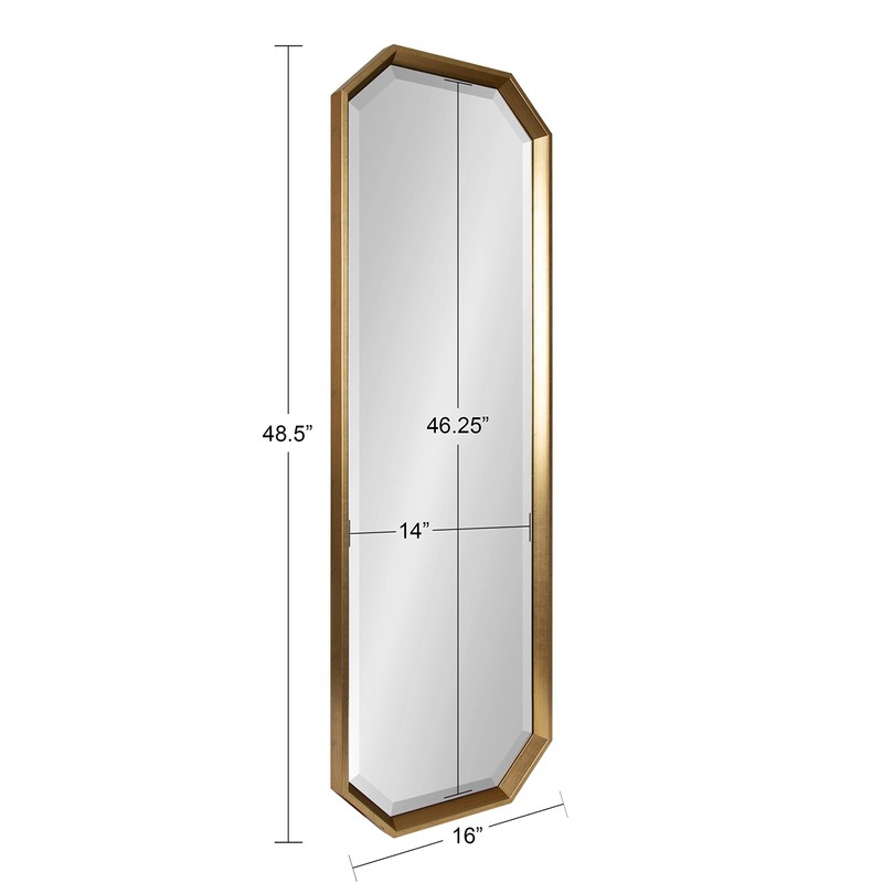 Kate and Laurel Calter Modern Full Length Framed Octagon Wall Mirror, 16 x 48.5, Gold, Decorative Glam Geometric Wall Accent