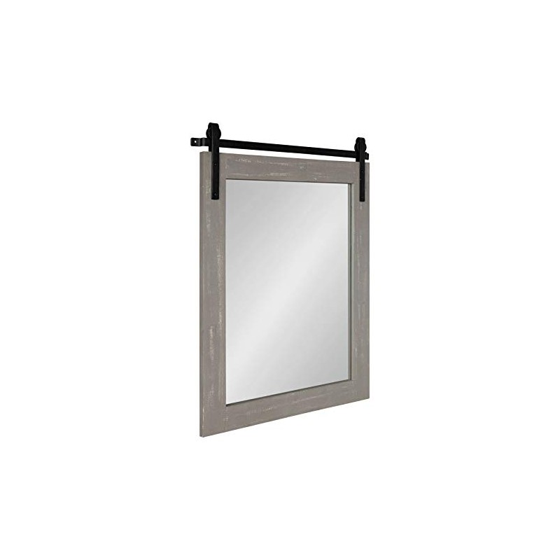 Kate and Laurel Cates Rustic Wall Mirror, 22" x 30" Rustic Gray, Farmhouse Barn Door-Inspired Wall Decor