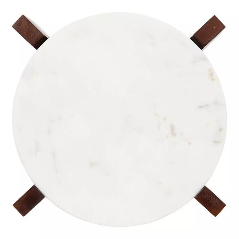 - Handcrafted from mango wood and 2 authentic marble tabletops