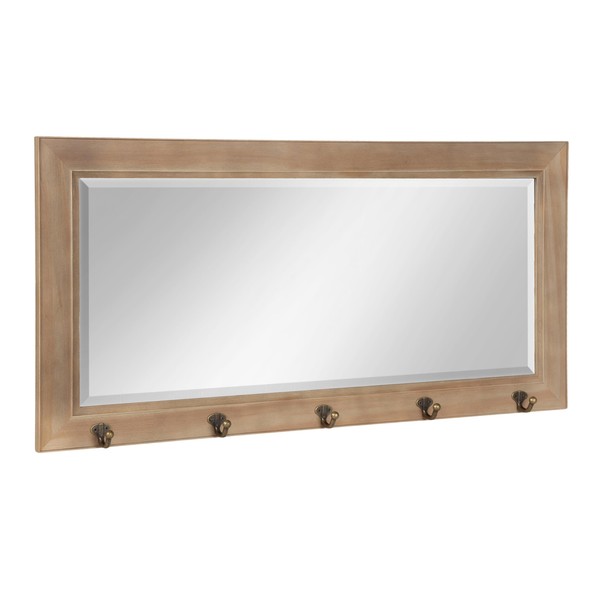 - Decorative traditional framed pub mirror with hooks for kitchen, entryway, or bar organization