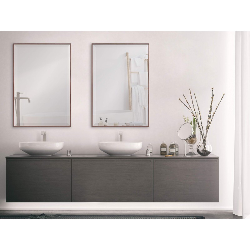 - LARGE SIZE: An artistic display on its own, this mirror is a beautiful part of any home decorating scheme. The modern frame adorns an inset beveled mirror that gives the illusion of even more light and depth