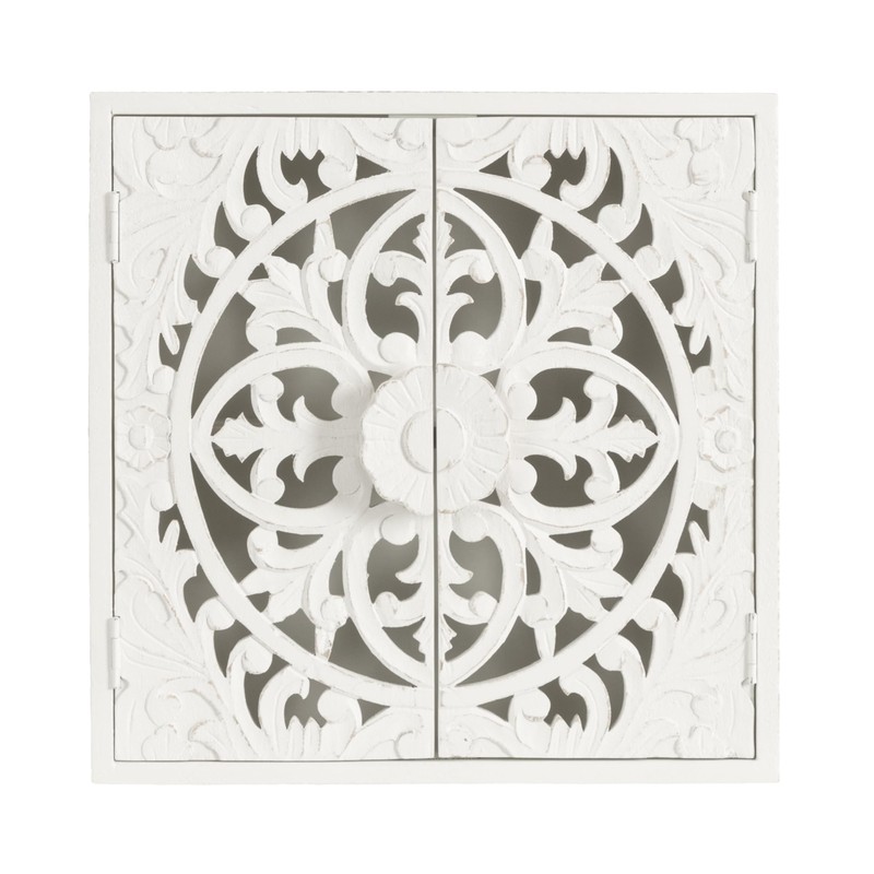 Kate and Laurel Saanvi Traditional Carved Wood Wall Cabinet, 20 x 6 x 20, White, Dimensional Over The Toilet Storage Cabinet for Bathroom Storage and Display