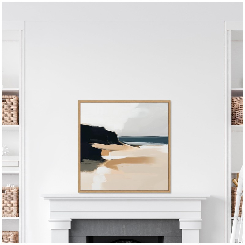 Kate and Laurel Sylvie Coastal Sand Modern Abstract Landscape I Framed Canvas Wall Art by The Creative Bunch Studio 30 x 30 Natural, Modern Contemporary, Abstract, Landscape Decor, Living Room
