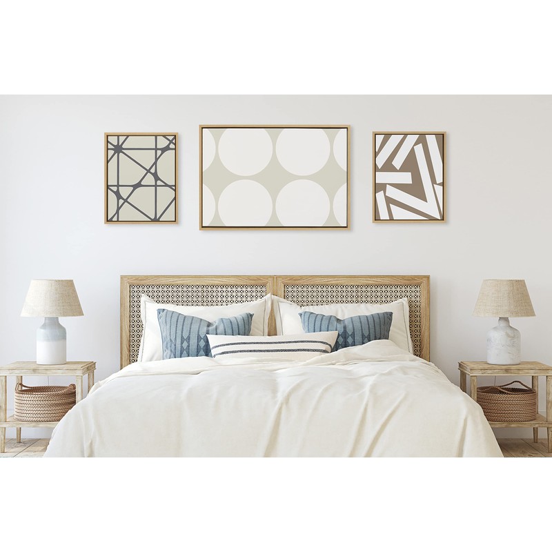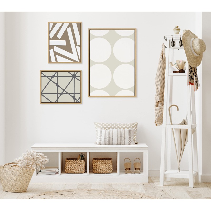 • Transitional Canvas Wall Art Set: Modern neutral abstract 3 piece set on framed high quality gallery-wrapped canvas. Display dimensions of the largest piece are 23 inches by 33 inches and the two smaller canvases are each 16 inches by 20 inches