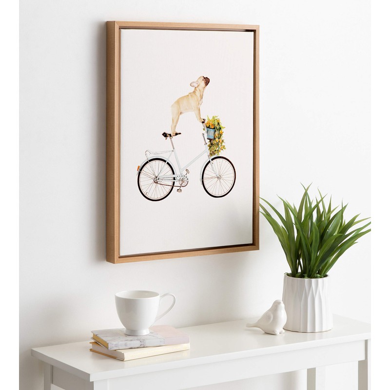 Kate and Laurel Sylvie Frenchie Bulldog Framed Canvas Wall Art by Amy Peterson, 18x24 Natural, Adorable Whimsical Dog Decor
