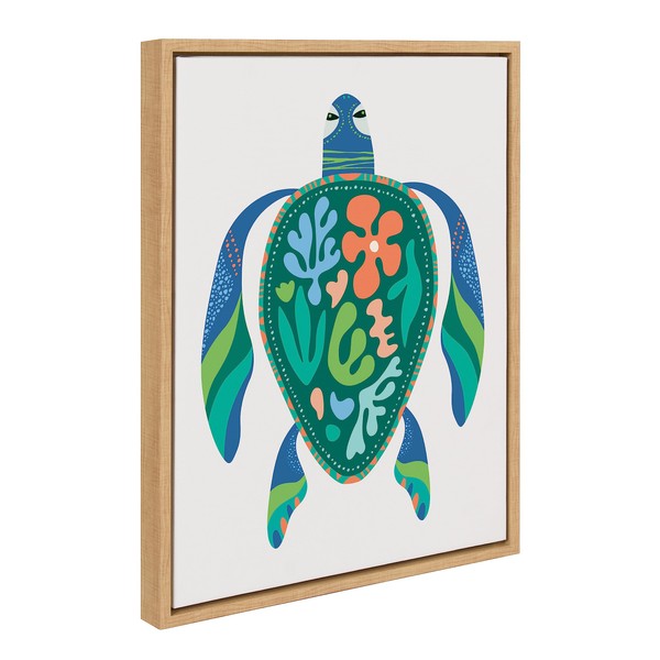 Kate and Laurel Sylvie MCM Sea Turtle Framed Canvas Wall Art by Rachel Lee of My Dream Wall; 18x24 Natural; Mid-Century Modern Colorful Patterened Ocean Animal Art for Wall