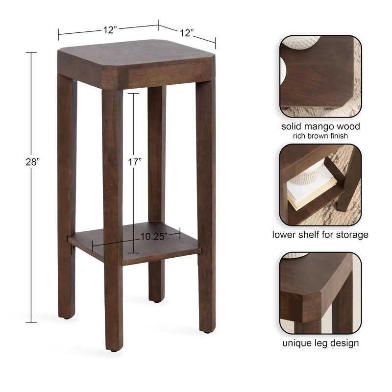 Kate and Laurel Talcott Modern Square Wood Drink Table, 12 x 12 x 28, Dark Brown, Transitional Decorative Two-Tier Pedestal Table for Use as Plant Stand Indoors or Living Room Decor Accent