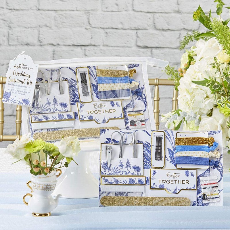 Wedding Day is more like Game Day. Every moment has been carefully planned. The dress, bridesmaids dresses, the flowers, the cake, the dinnerware, the shoes, the aisle , the ceremony, and the list goes on and on, but you can't take into account the little things like broken threads, fallen curls, shiny chins and broken nails. That is why Kate Aspen curated this stunning "in a pinch" emergency beauty kit that solves problems before they have come up. Designed in the classic pattern of Blue Willow with a 21st century update in a clear bag that can be used to travel for years to come makes this the wedding gift for bridesmaids.
