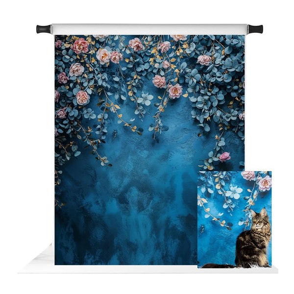 Kate Blue Floral Backdrop for Portrait Retro Abstract Fine Art Flowers Background Studio Props 5x7ft